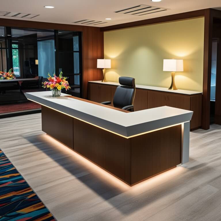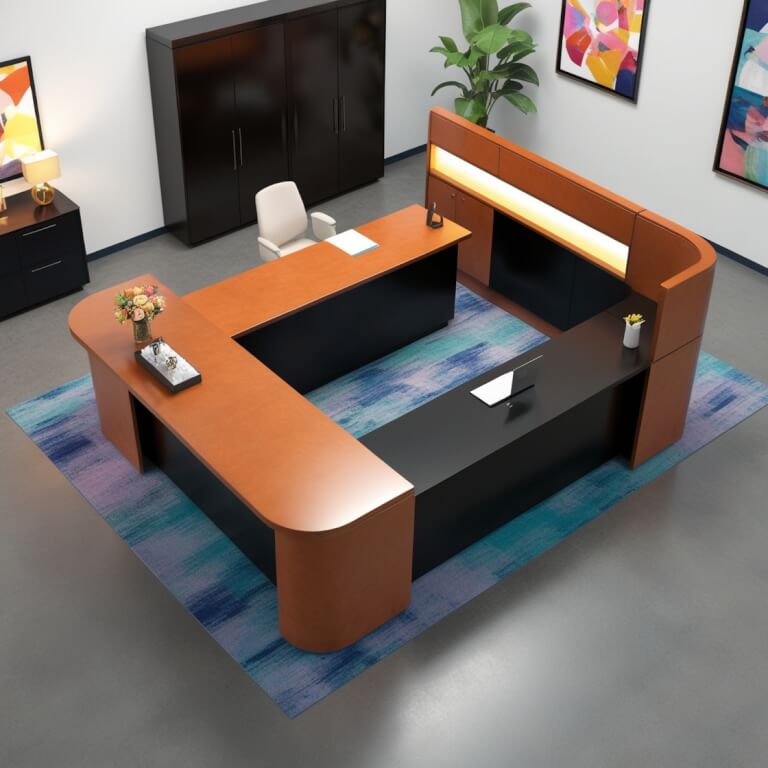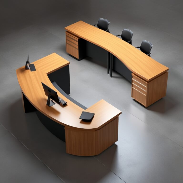 - Spacious L-shaped design offering ample workspace for receptionists and administrative tasks.
