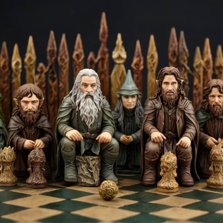 • Intricately designed chess pieces inspired by the characters of The Lord of the Rings.