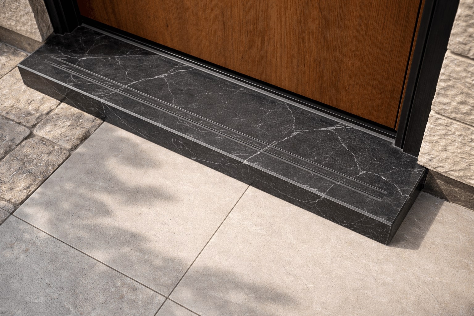 Where & how we used it: Installed directly under the main door opening, aligned with the indoor tiles and outdoor step, and sealed around the edges for a clean joint.
