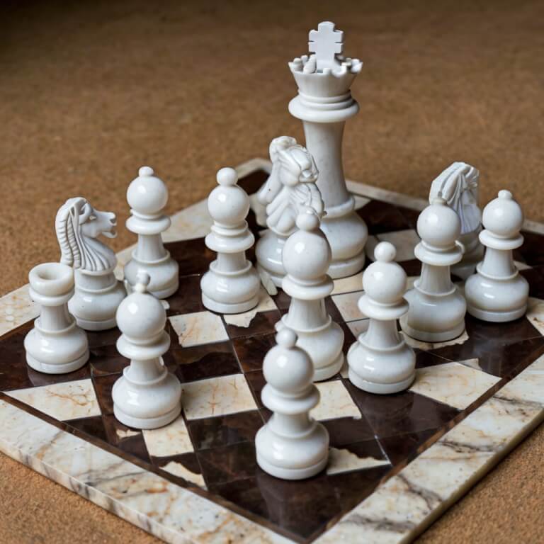 Introducing the Pentalquartz Classic White Quartz Chess Set, a stunning fusion of artistry and strategy that elevates the timeless game of chess into a luxurious centerpiece for your home. Crafted from high-quality engineered quartz, this chess set features a pristine white finish with a distressed texture, offering a sophisticated aesthetic that complements any decor. Each piece is meticulously designed to provide not only a visual delight but also a tactile experience, making every game a memorable occasion.