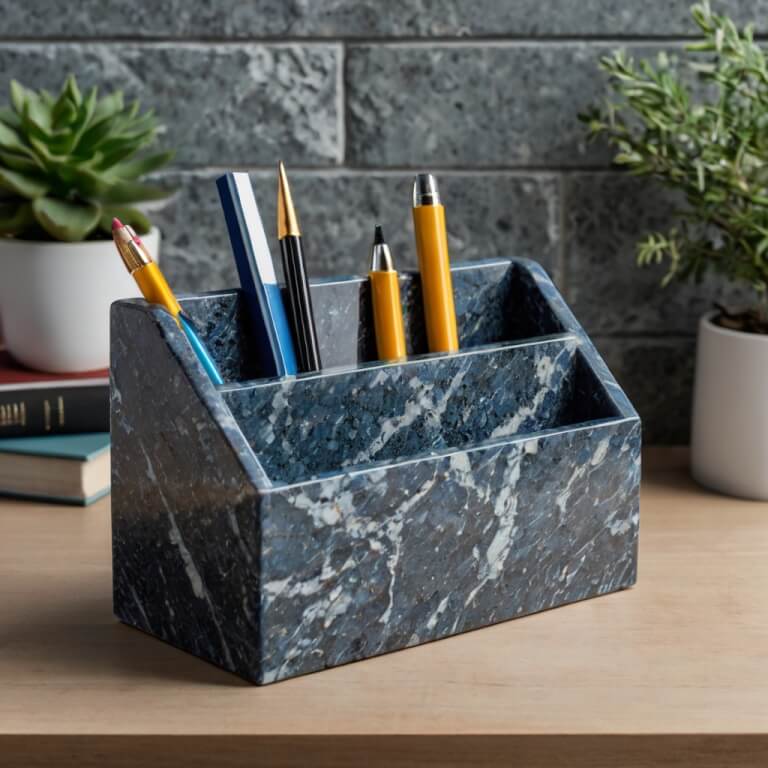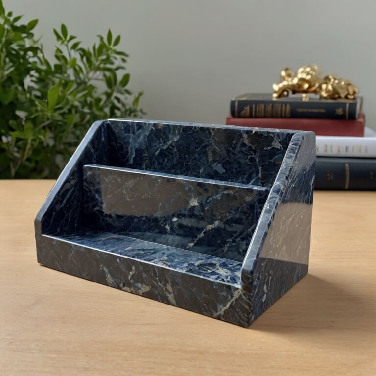 Поднимите уровень вашего рабочего пространства с изысканным органайзером для стола из гранита Гималайский Блю, который идеально сочетает функциональность и элегантность. Изготовленный из высококачественного гранита, добытого в величественных горах Бразилии, Индии, Норвегии, Италии и Китая, этот органайзер для стола демонстрирует потрясающее матовое покрытие, подчеркивающее его естественную красоту. Уникальные синие оттенки и сложные узоры гранита делают каждую единицу уникальным дополнением к вашему офисному или домашнему декору, обеспечивая порядок и стиль в вашем рабочем пространстве.